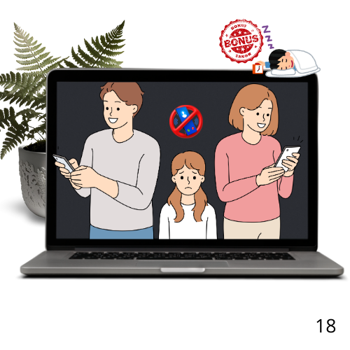 Získate praktický digitálny kontrakt, ktorý pomáha nastaviť pravidlá používania obrazoviek v celej rodine. Súčasťou sú aj vzory dialógov s partnerom či starými rodičmi, aby všetci v rodine rozumeli nastaveným pravidlám a vzájomne ich dodržiavali.